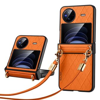 For vivo X Flip SULADA Elegant Rhombic Texture Folding Phone Case with Lanyard(Orange) (SULADA)