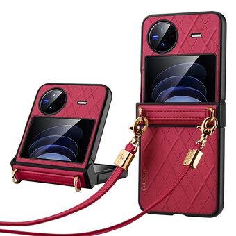 For vivo X Flip SULADA Elegant Rhombic Texture Folding Phone Case with Lanyard(Red) (SULADA)
