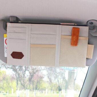 Car Sun Visor Multifunctional Storage Bag Glasses ID Holder(Beige)