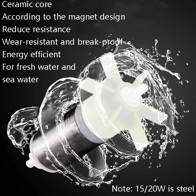 5. The ceramic shaft core is designed according to the use of magnets to reduce resistance, wear-resisting and anti-breaking, high efficiency and energy saving, universal in fresh water and sea water (note: 15/20W is steel)