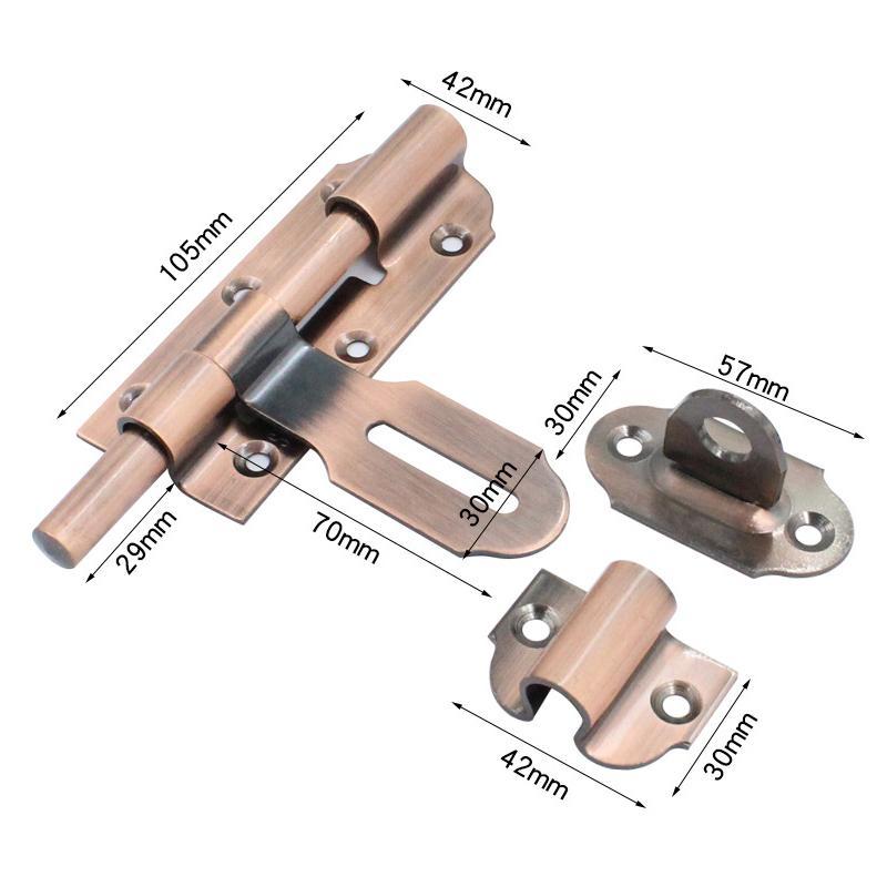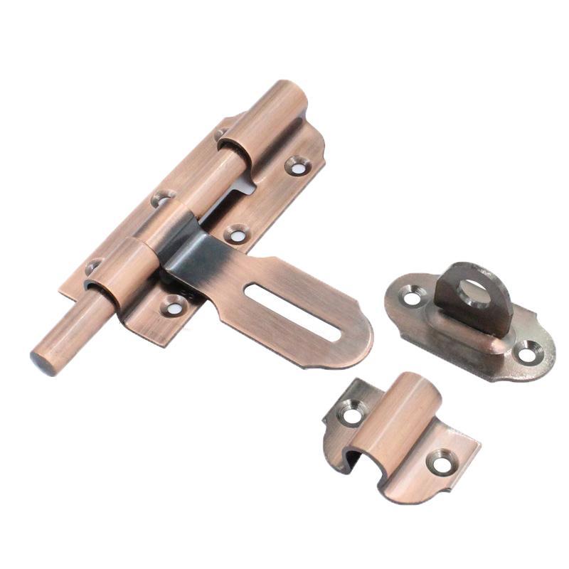 Surface-Mounted Stainless Steel Anti-Theft Door Bolt, Specification: 4-inch With Lock Antique Copper