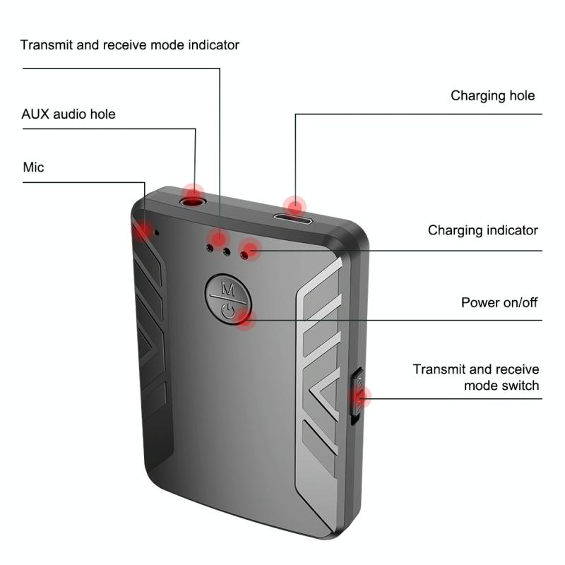 9. Bluetooth transmitter function: can connect 2 pairs of Bluetooth headsets at the same time