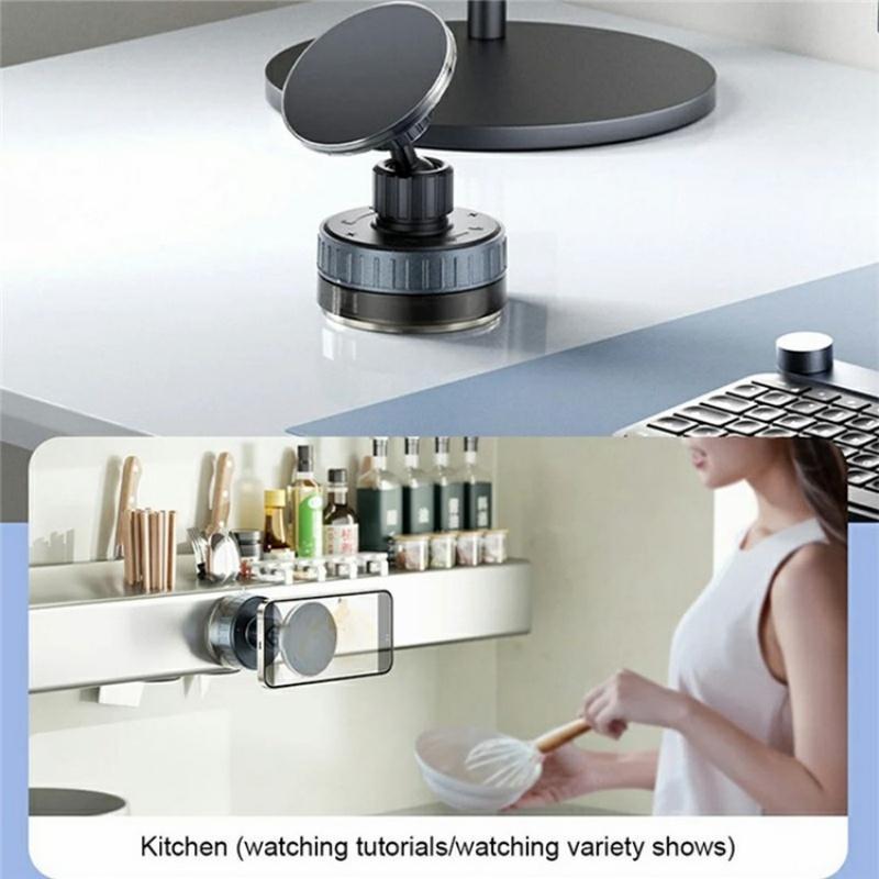 3.Versatile Multi-Scene Use:This multifunctional phone holder with vacuum suction cup adheres to various smooth surfaces, making it ideal for driving, exercising, cooking, and makeup application scenarios