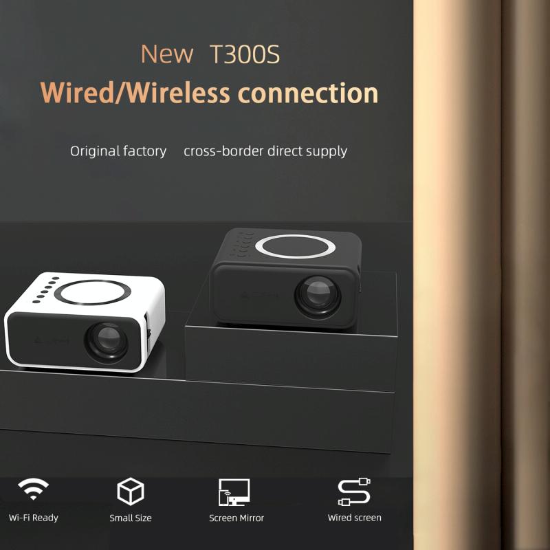 T300S 320x240 24ANSI Lumens Mini LCD Projector Supports Wired & Wireless Same Screen, Specification:EU Plug(White)