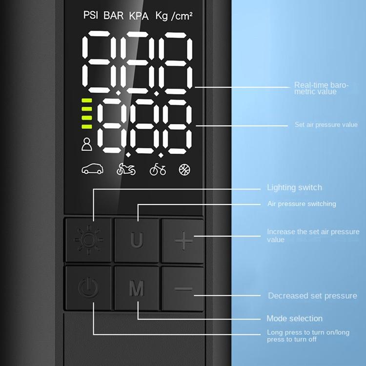 5. The tire pressure can be set in advance. After setting, when the inflation reaches the preset value, the air pump will automatically stop inflating, which is convenient and fast.
