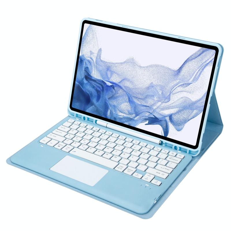 T800B-A Touch Pad Detachable Bluetooth Keyboard Leather Tablet Case For Samsung Galaxy Tab S8+/S7+/S7 FE(Sky Blue)