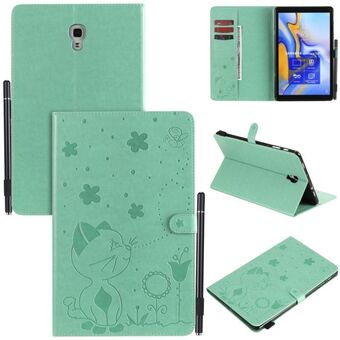 For Samsung Galaxy Tab A10.5 T590 / T595 Cat Bee Embossing Pattern Shockproof Table PC Protective Horizontal Flip Leather Case with Holder & Card Slots & Wallet & Pen Slot & Wake-up / Sleep Function(Green)