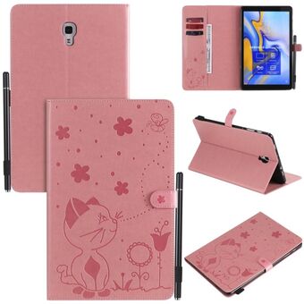 For Samsung Galaxy Tab A10.5 T590 / T595 Cat Bee Embossing Pattern Shockproof Table PC Protective Horizontal Flip Leather Case with Holder & Card Slots & Wallet & Pen Slot & Wake-up / Sleep Function(Pink)