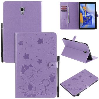 For Samsung Galaxy Tab A10.5 T590 / T595 Cat Bee Embossing Pattern Shockproof Table PC Protective Horizontal Flip Leather Case with Holder & Card Slots & Wallet & Pen Slot & Wake-up / Sleep Function(Purple)