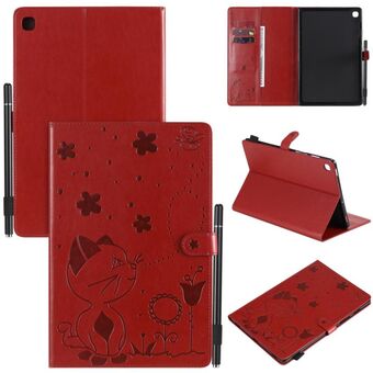 For Samsung Galaxy Tab S5e T720 / T725 Cat Bee Embossing Pattern Shockproof Table PC Protective Horizontal Flip Leather Case with Holder & Card Slots & Wallet & Pen Slot & Wake-up / Sleep Function(Red)