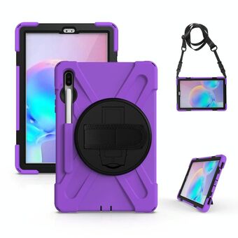 For Samsung Galaxy Tab S6 10.5 inch T860 / T865 Shockproof Colorful Silicone + PC Protective Case with Holder & Shoulder Strap & Hand Strap & Pen Slot(Purple)