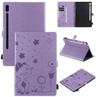 For Samsung Galaxy Tab S6 T860 Cat Bee Embossing Pattern Shockproof Table PC Protective Horizontal Flip Leather Case with Holder & Card Slots & Wallet & Pen Slot & Wake-up / Sleep Function(Purple)