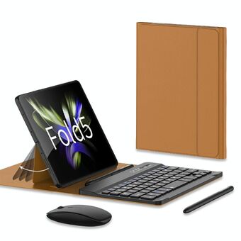 For Samsung Galaxy Z Fold5 GKK Gear Adjustment Bluetooth Keyboard + Pen + Mouse + Case Set(Brown) (GKK)