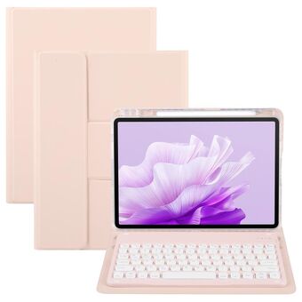 For Samsung Galaxy Tab S8+ / S7 FE / S7+ Round Cap Bluetooth Keyboard Leather Case with Pen Slot & Touchpad(Pink+White)
