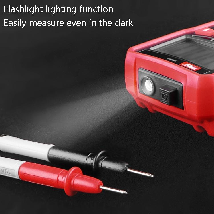 5. Acousto-optic alarm, turn to NCV gear, bring the non-contact voltage sensing area close to the circuit, when the AC voltage is measured, the multimeter will display and buzzer alarms of different frequencies according to the detected voltage intensity