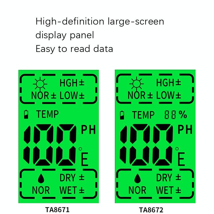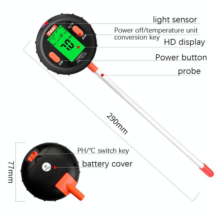 5. Test range: light intensity, pH, soil moisture, soil temperature, ambient humidity (TA8671 does not have this function)