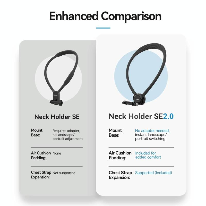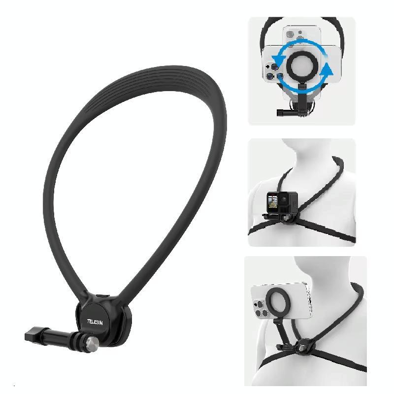 TELESIN Action Camera Neck Holder SE2.0 POV Perspective Bracket With Adjustable Chest Strap(Black) (TELESIN)