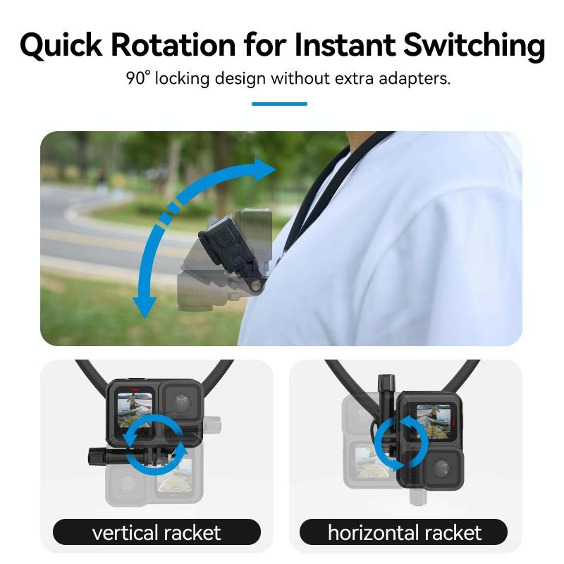 1. Sports camera neck bracket, no need for adapter accessories, quickly switch between horizontal and vertical shooting
