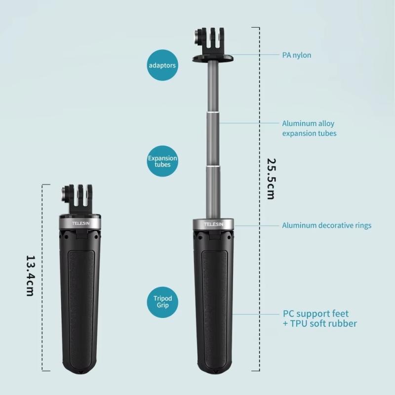 1. Mini portable tripod selfie stick, 13.4cm-25.5cm multi-level height adjustment