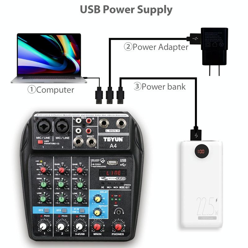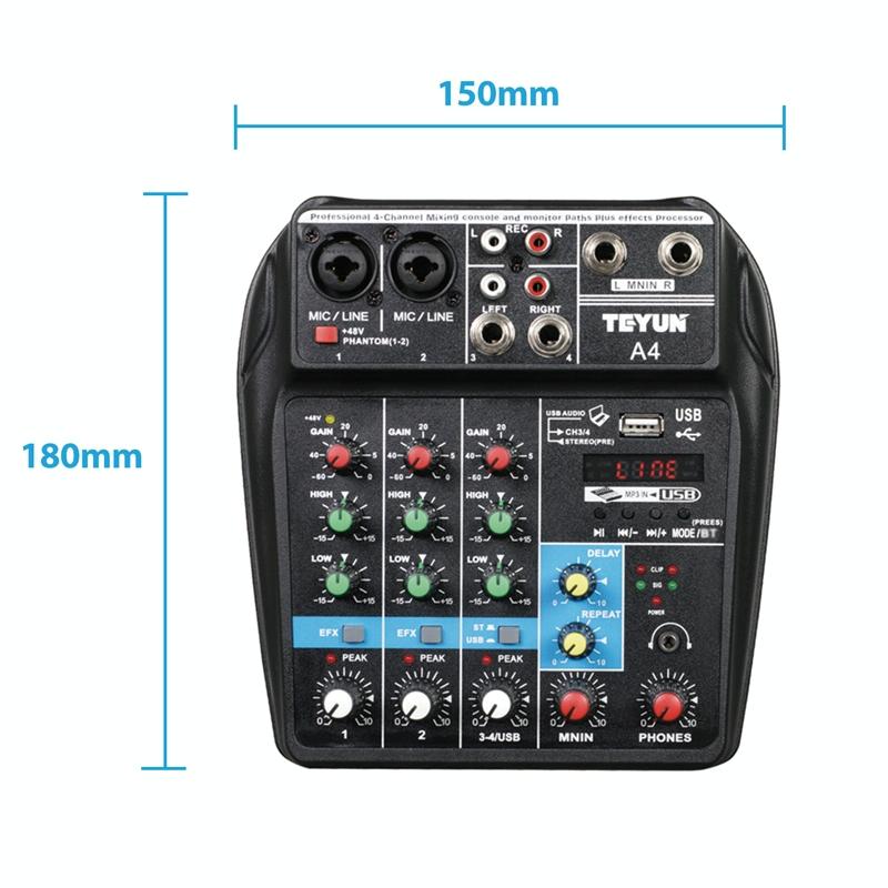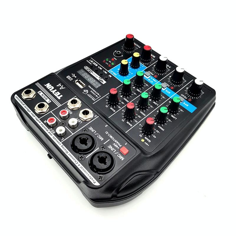 1. A multi-purpose 4-channel mixer, which can meet the needs of users for home music production, online live broadcast, K song cover, etc.