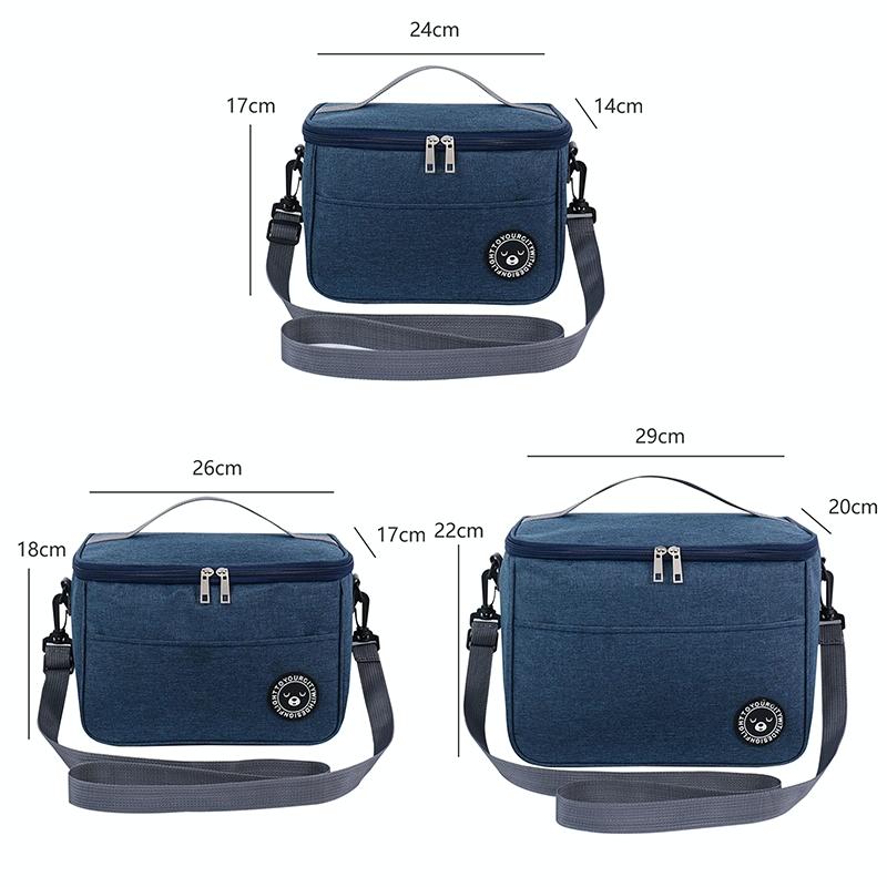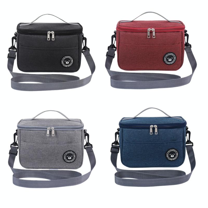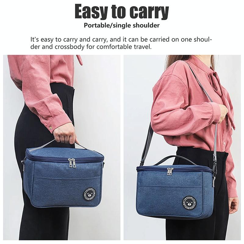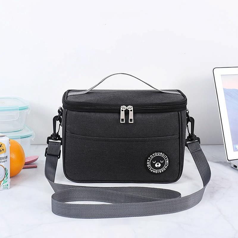 Thermal Lunch Box Bag Durable Waterproof Office Cooler Lunchbox with Strap L(Black)