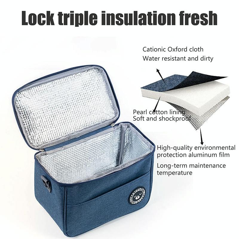2. The outer cationic Oxford cloth is waterproof and dirt-resistant, the pearl cotton lining is soft and shock-resistant, and the inner aluminum foil is long-lasting heat preservation