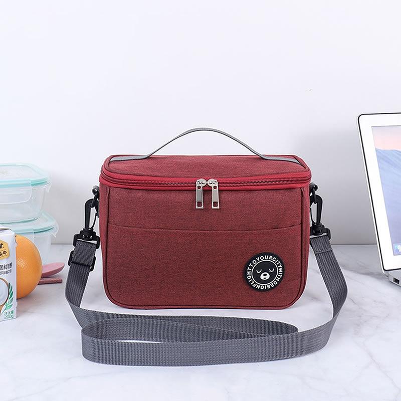 Thermal Lunch Box Bag Durable Waterproof Office Cooler Lunchbox with Strap S(Dark Red)