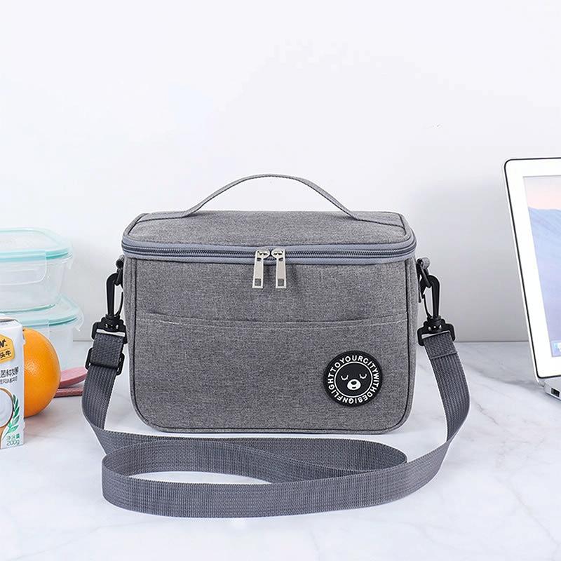 Thermal Lunch Box Bag Durable Waterproof Office Cooler Lunchbox with Strap S(Gray)