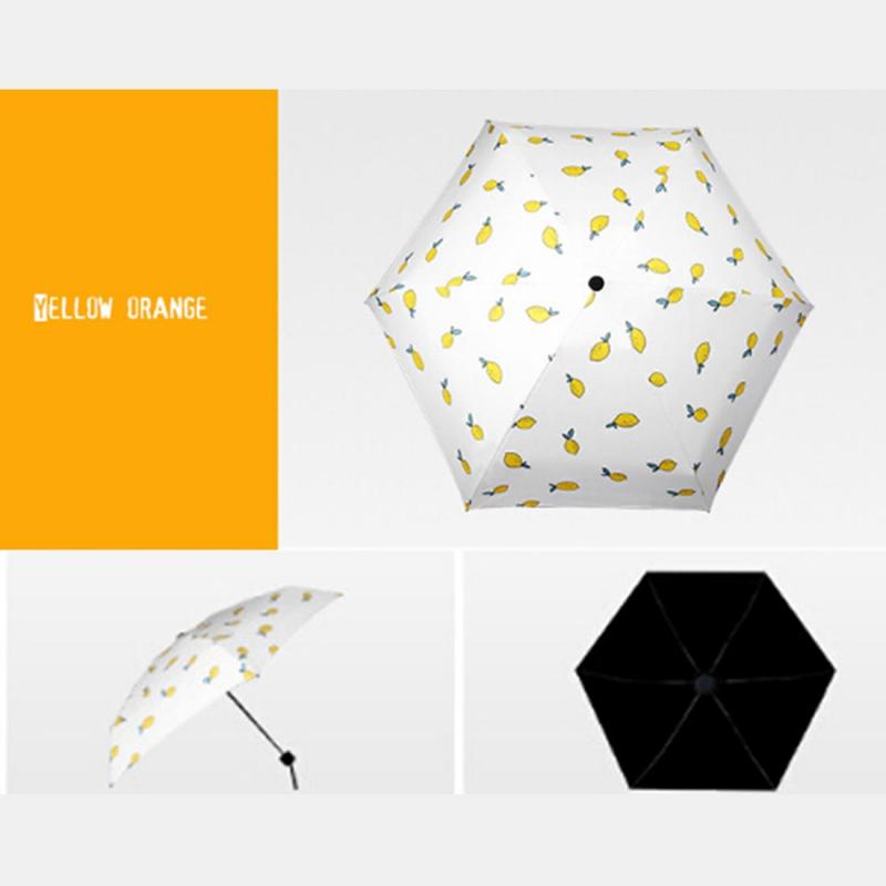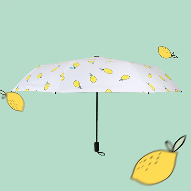Three Folding Ultralight Umbrella, Women Waterproof Anti-UV (Lemon Pattern)