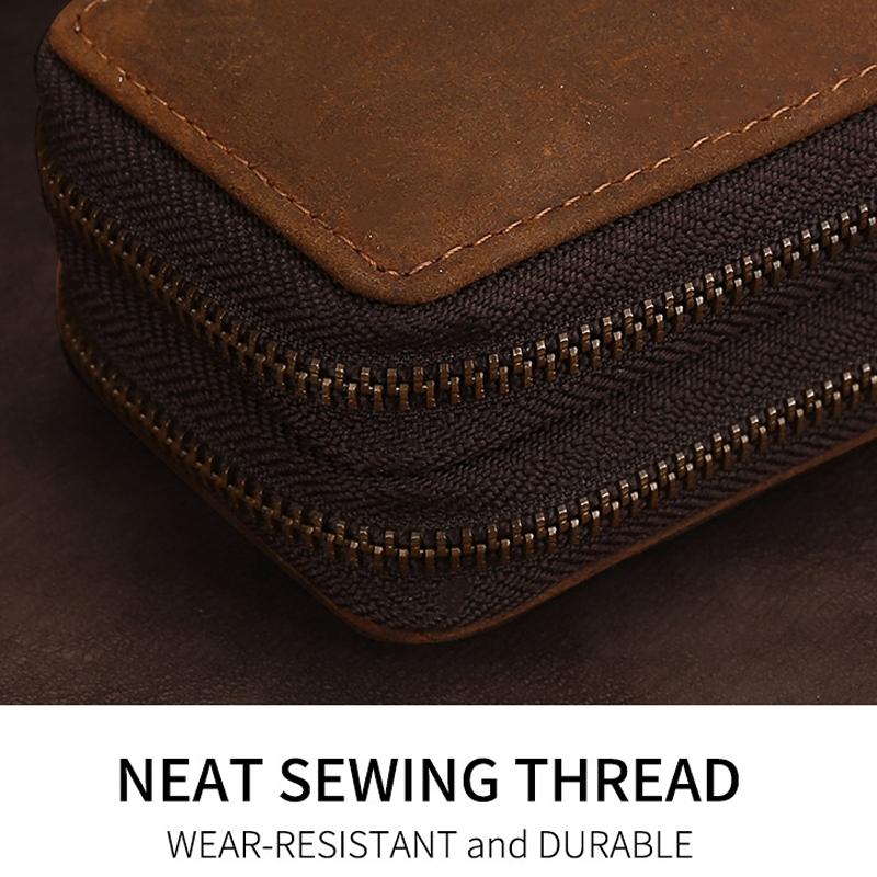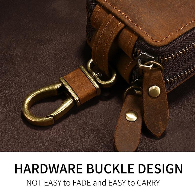 TP-9032 First Layer Cowhide Multifunctional Double Zipper Car Key Case(Brown)