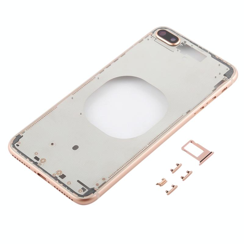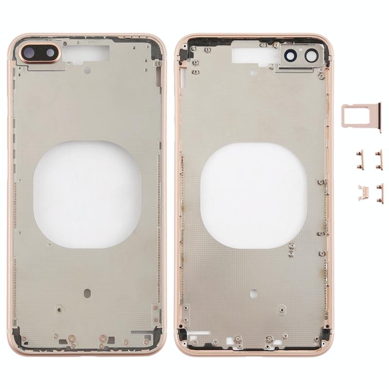 Transparent Back Cover with Camera Lens & SIM Card Tray & Side Keys for iPhone 8 Plus (Gold)
