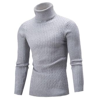 High-Collar Long-Sleeved Men Sweater Casual Thread Knit Clothes, Size: XXXL(Light Gray)