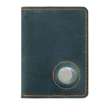 Vintage Genuine Leather Passport Holder Card Bag with Tracker Slot(Blue)