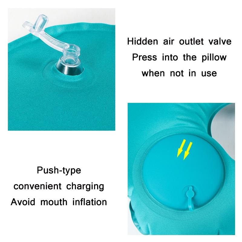 Travel Inflatable Press U-Shaped Neck Guard Pillow, Colour: Flocked U009-01(Peacock Green)