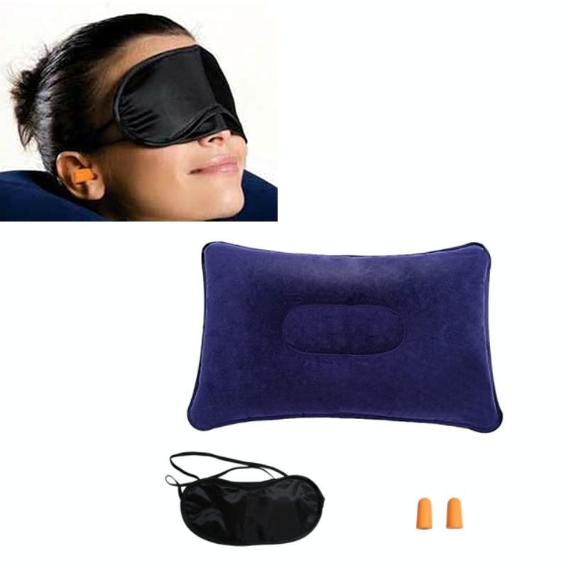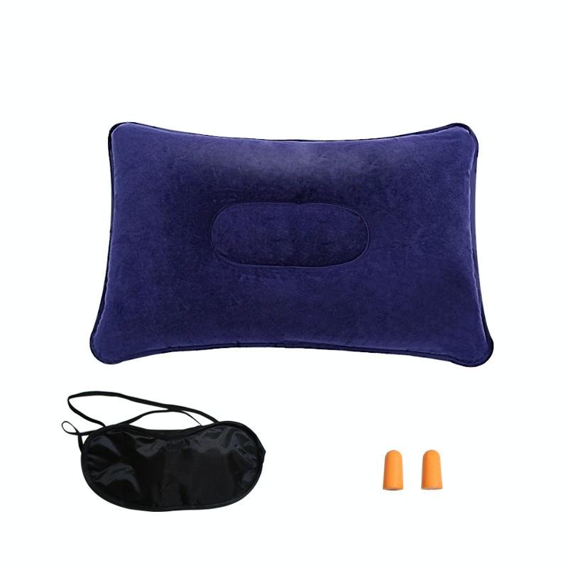 Travel Neck Flocking Inflatable Pillow Eye Mask Earplugs