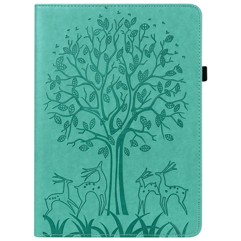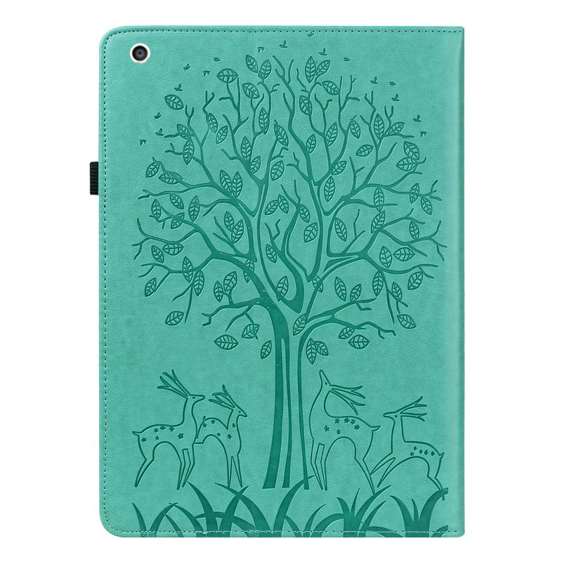 Tree & Deer Pattern Pressed Printing Horizontal Flip PU Leather Case with Holder & Card Slots & Sleep / Wake-up Function For iPad mini 5/4/3/2/1(Green)