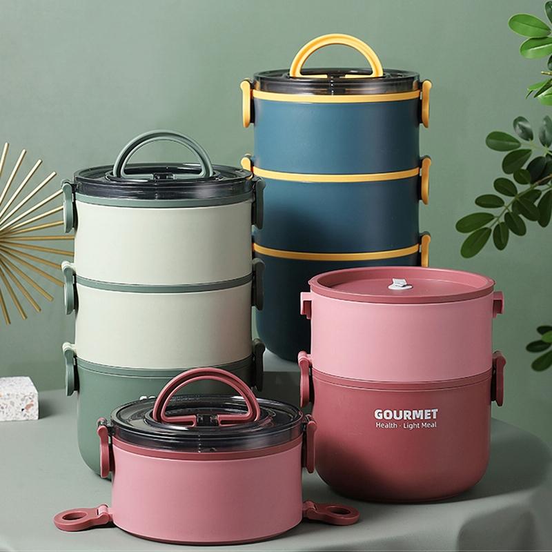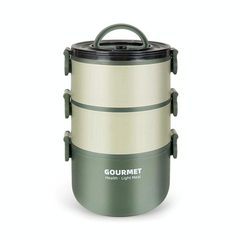 Tri-Layer 2200ml 304 Stainless Steel Insulated Bowl Student Plastic Shell Lunch Box(Green)