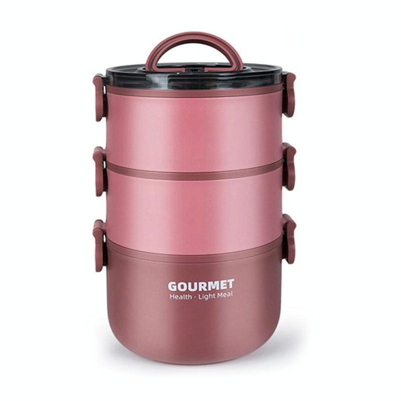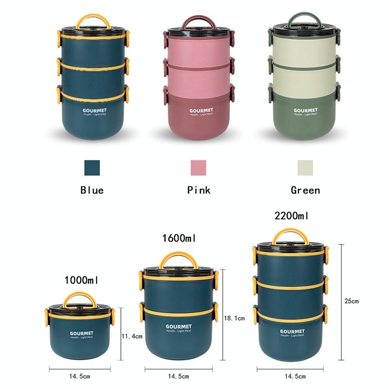 Tri-Layer 2200ml 304 Stainless Steel Insulated Bowl Student Plastic Shell Lunch Box(Red)