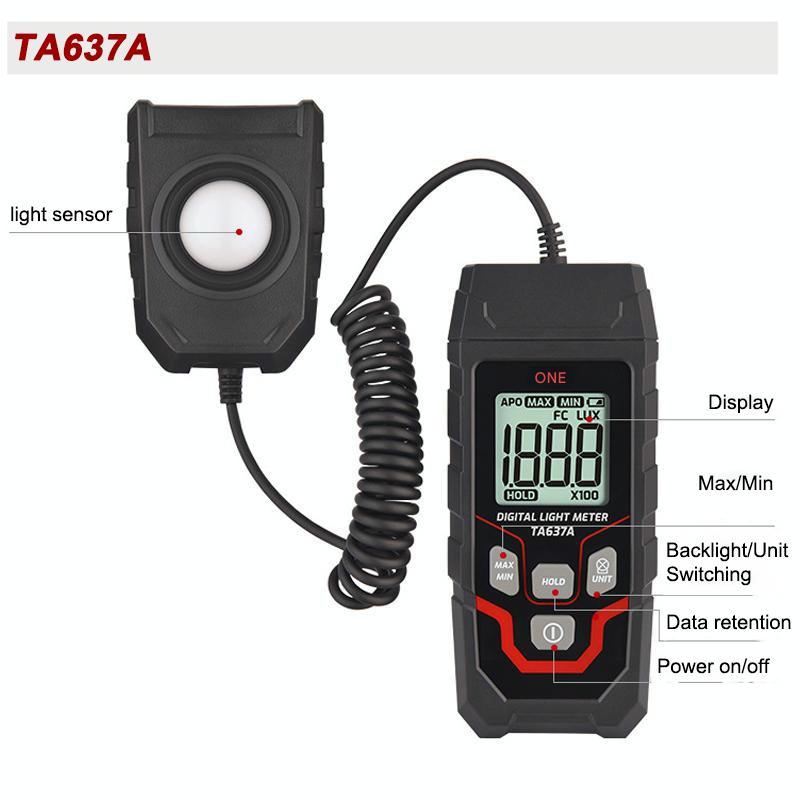 2. Measuring range: 0.1 to 200000LUX (0.01-20000FC)