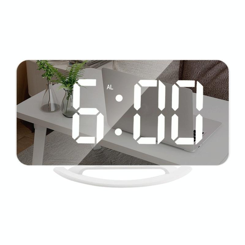 TS-8201 LED Digital Mirror Alarm Clock Big Screen Dual USB Desktop Table Clock, Color: White Shell White Light
