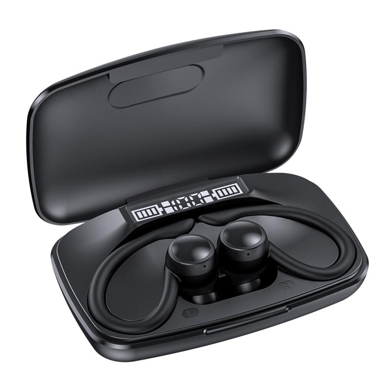 TWS Ear-Mounted LED Digital Display Noise Reduction Bluetooth Earphones With Power Bank Function(Black)