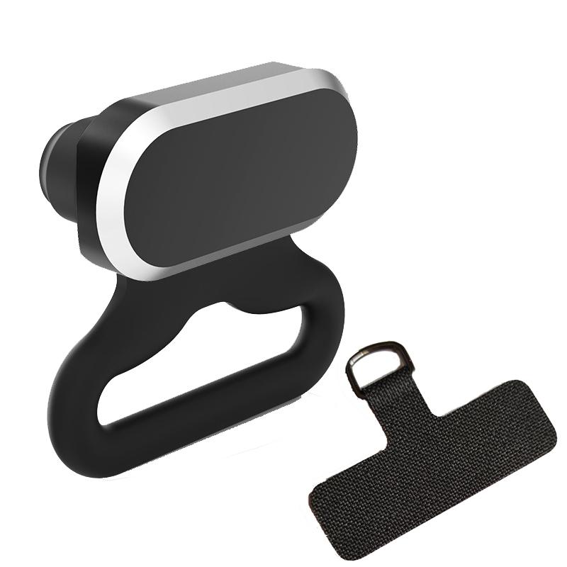 Type-C 2 In 1 Phone Charging Port Silicone Dust Plug + Lanyard Patch Set(Black)