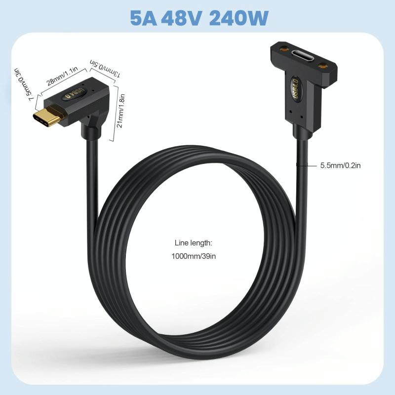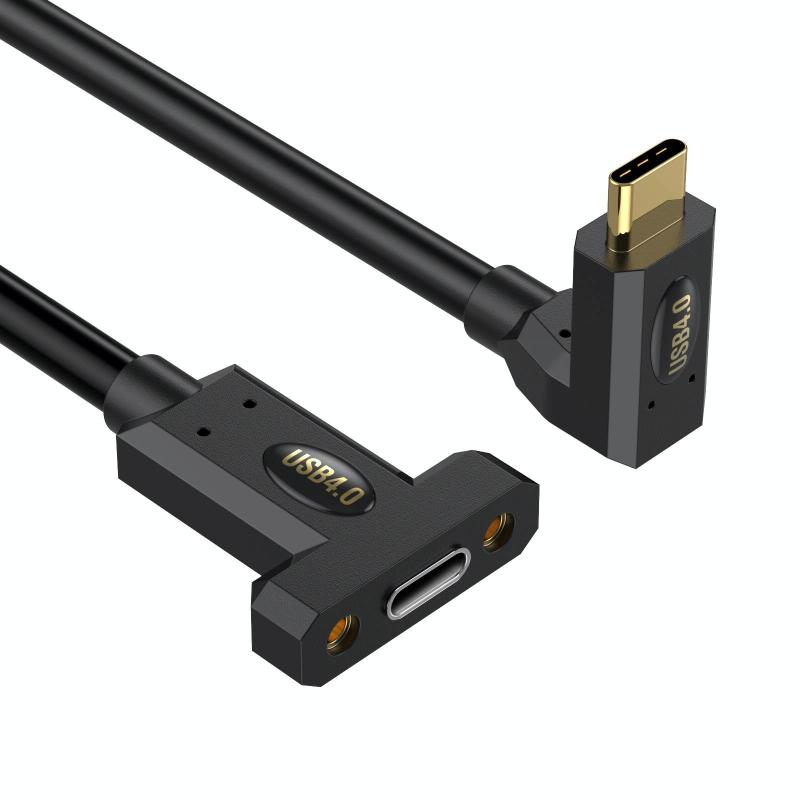Type-C Straight Elbow to Type-C Female Screw Fixed Panel Extension Cable with Ear, Length:1m