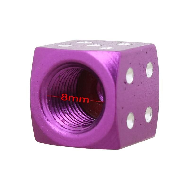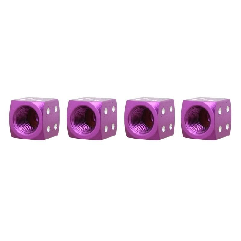 Universal 8mm Dice Style Aluminium Alloy Car Tire Valve Caps, Pack of 4(Purple)