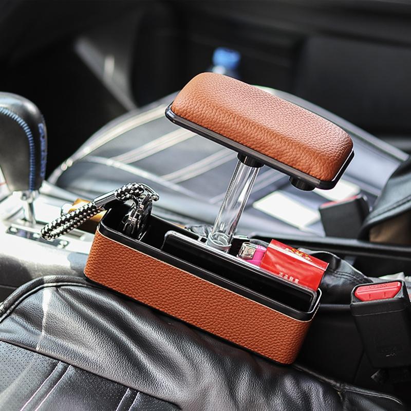 Universal Car Multi-functional Console Side Pocket Seat Gap Side Storage Box with Elbow Support Pad (Brown)