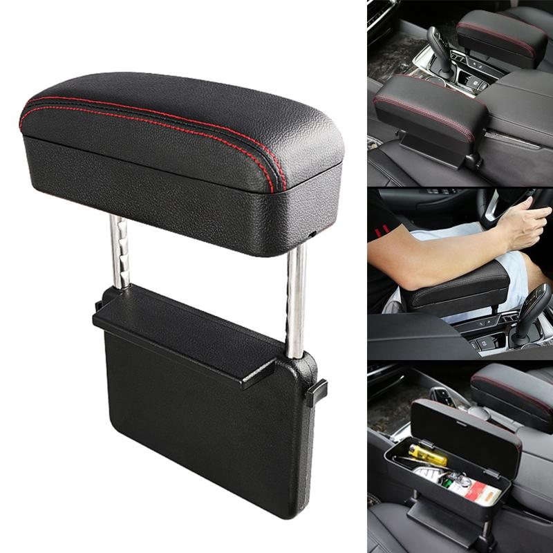 Universal Car PU Leather Wrapped Armrest Box Cushion Car Armrest Box Mat with Storage Box (Black Red)