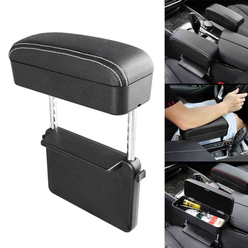 Universal Car PU Leather Wrapped Armrest Box Cushion Car Armrest Box Mat with Storage Box (Black White)
