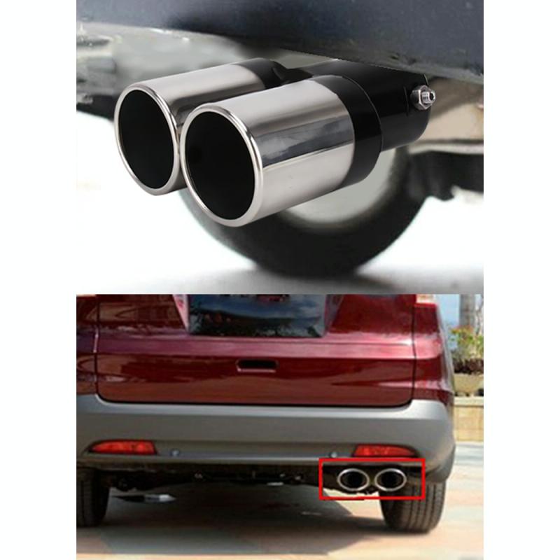 Universal Car Styling Stainless Steel Straight Double Outlets Exhaust Tail Muffler Tip Pipe(Black)