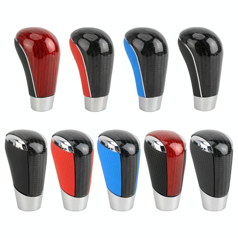 Universal Carbon Fiber Texture Leather Hole Pattern Car Gear Shift Knob Modified Shifter Lever Knob