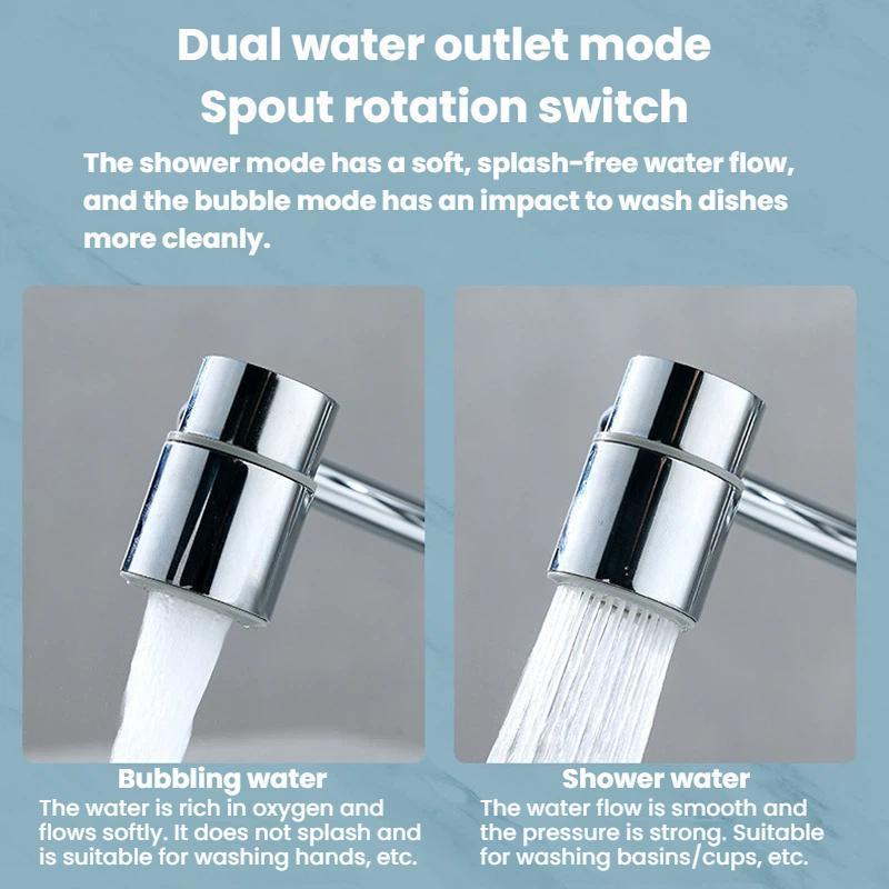 2. Dual water flow modes with rotating spout switch. Gentle shower mode minimises splashing, while powerful bubble mode delivers thorough dishwashing performance